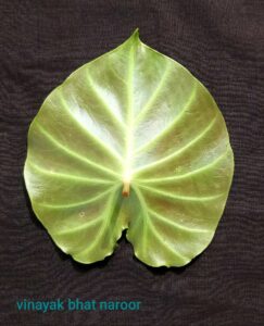The leaf is solitary, is broad and peltate, 10 – 40 cm long and 5 – 30 cm across, with a petiole upto 40 cm long. (ಕೃಪೆ: ವಿಕಿಪೀಡಿಯಾ)
