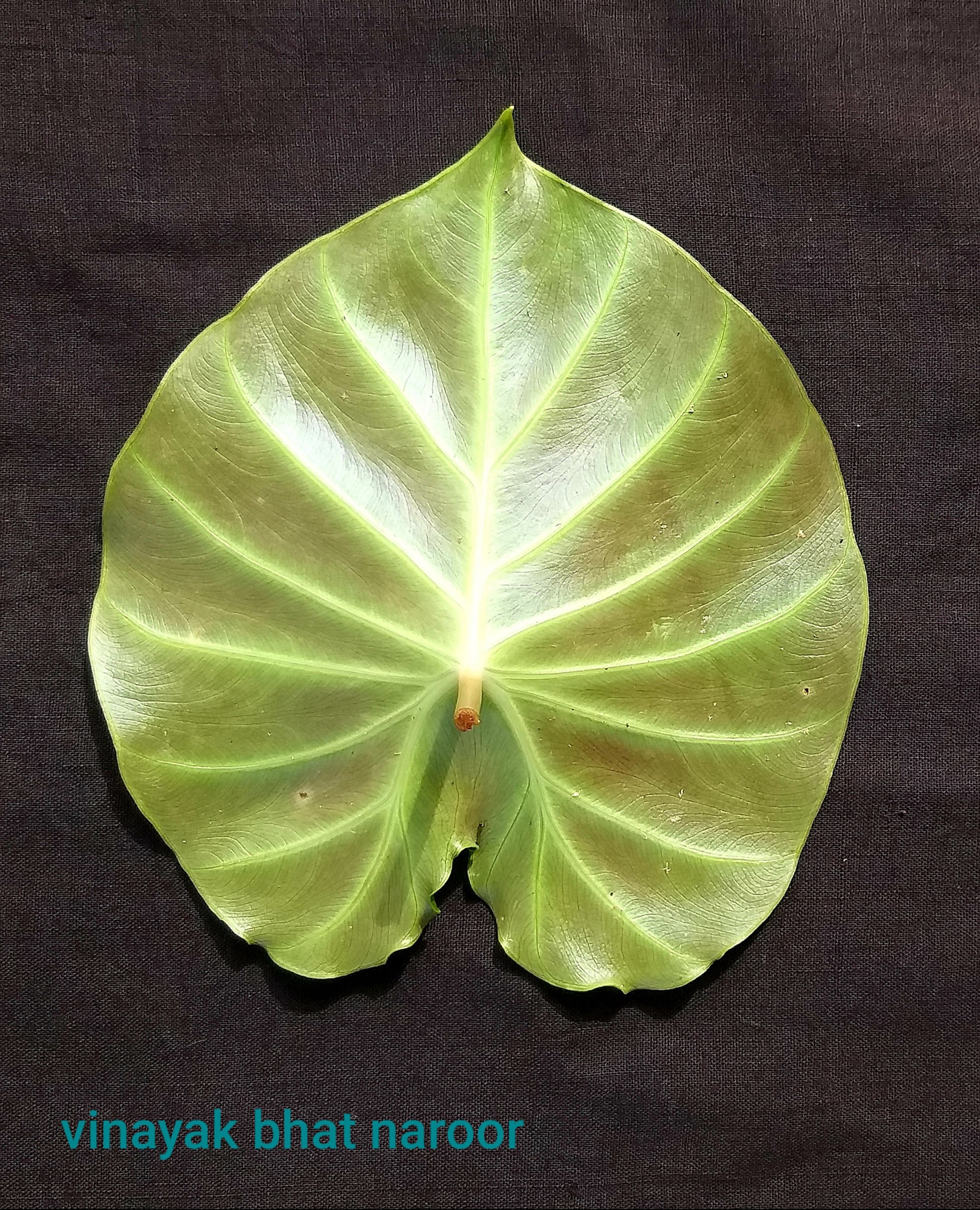 40 ಸೆಂ.ಮೀ. ಉದ್ದದ ತೊಟ್ಟಿನ ಮೇಲಿರುವ ಅಗಲವಾದ ಒಂದೇ ಎಲೆ. ಇನ್ನು Peltate ಎಂಬುದಕ್ಕೆ ಗುರಾಣಿ/ಢಾಲು/ಶೀಲ್ಡ್ (ಪಾರಿತೋಷಕ) ಅನ್ನುವ ಅರ್ಥ ಕಂಡಿತು. ಸೂಕ್ತವಿದೆಯಲ್ಲವೆ?