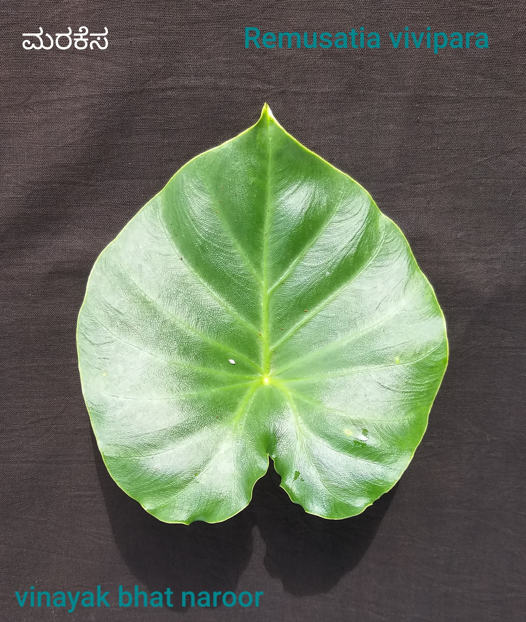 ಉಳಿದ ಕೆಸುವಿನ ಎಲೆಗೆ ಹೋಲಿಸಿದರೆ ಮರಕೆಸದ ಎಲೆ ಚಂದ. ತುಸು ದಪ್ಪಗಿರುವ ಇದು ತೀರಾ ನಾಜೂಕಲ್ಲ. ಹೊಳಪು ಹೆಚ್ಚು. ಎಲೆಯ ಹಿಂಭಾಗದಲ್ಲಿ ಸ್ಪಷ್ಟವಾಗಿ ತೋರುವ ಗೆರೆಗಳಿಂದ ಇದರ ಆಕರ್ಷಣೆ ಮತ್ತೂ ಜಾಸ್ತಿ. ಯಕ್ಷಗಾನ ವೇಷಭೂಷಣದ ಕಿರೀಟ/ಪಗಡೆಯ ತದ್ರೂಪ! ಅಂದಹಾಗೆ ಇಂಗ್ಲೀಷಿನಲ್ಲಿ ಇದಕ್ಕೆ hitchhiker elephant ear ಎಂಬ ಹೆಸರಿದೆ. ಆನೆ ಕಿವಿ ಅನ್ನೋದೇನೋ ಸರಿ. ಆದರೆ ಈ ಬಿಟ್ಟಿ ಪ್ರವಾಸ ಮಾಡುವವರು (hitchhiker) ಯಾಕೆ ಸೇರಿದರು ಗೊತ್ತಿಲ್ಲ.